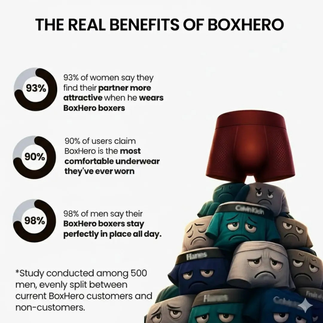 Remember the unbeatable comfort of slipping into a brand-new pair of boxers? The soft fabric, perfect fit, and that fresh feel. But after a few washes, that magic fades, right? Not anymore. With Boxhero, which lasts up to 3x longer than regular boxers, you will love: