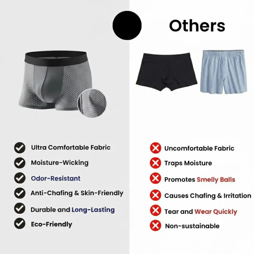 Explore the unique benefits of our bamboo fiber boxers and see why they are the superior choice for all-day comfort and hygiene compared to traditional cotton underwear.